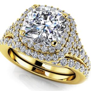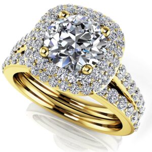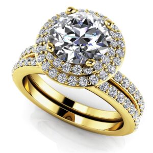 Brilliant Double Halo Diamond Bridal Set In 14K 18K Or Platinum