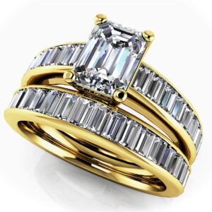 Brilliant Fire Emerald Cut Bridal Set In Yellow White Gold Or Platinum