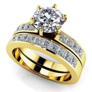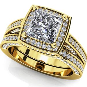 Splendid Princess Cut Bridal Set In 14K 18K White Yellow Or Rose Gold