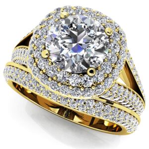 Splendid Double Halo Diamond Wedding Set In White Yellow Or Rose Gold