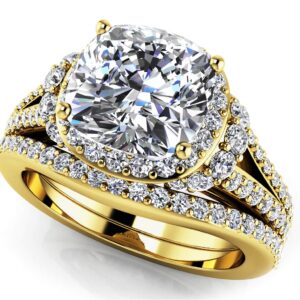 Split Shank Cushion Cut Bridal Set In Yellow Gold White Gold And Platinum