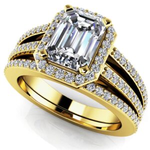 Split Shank Emerald Cut Wedding Set In Gold Or Platinum