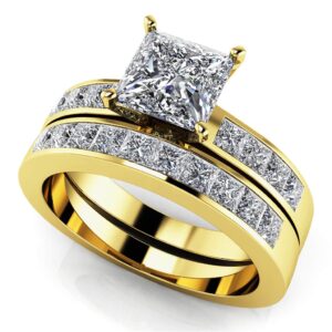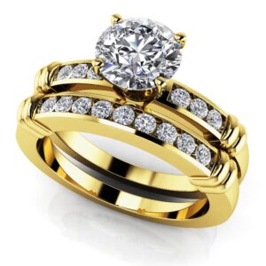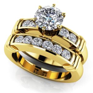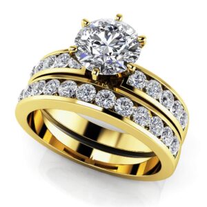 Channel Diamond Bridal Set In 14K 18K White Yellow Rose Gold Or Platinum