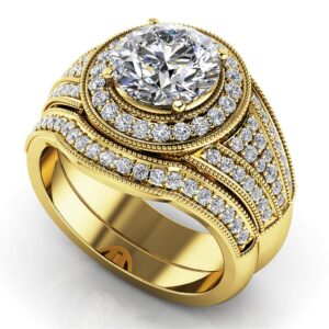 Classic Sparkle Diamond Wedding Set In 14K 18K White Yellow Or Rose Gold