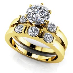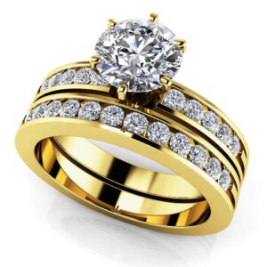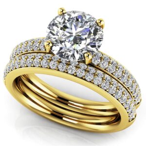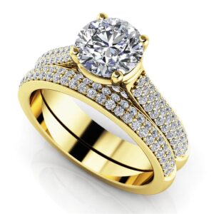 Dazzling Diamond Bridal Set With Side Stones In Yellow White Gold Or Platinum