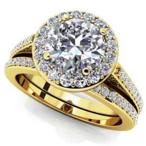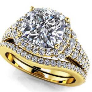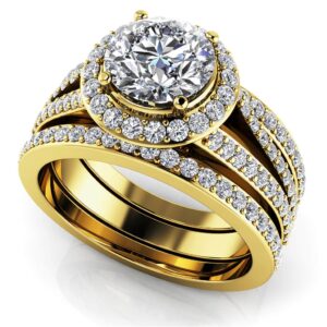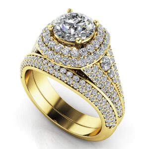 Deluxe Double Halo Diamond Bridal Set In White Gold Yellow Gold And Platinum