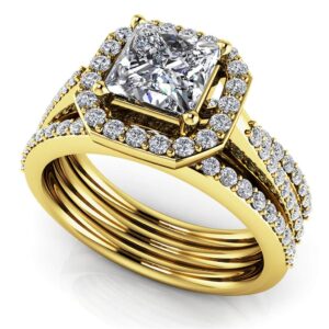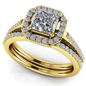Dazzling Duo Princess Cut Diamond Bridal Set In 14K 18K White Yellow Or Rose Gold
