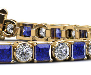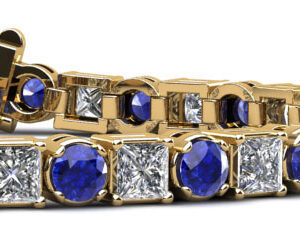 Princess Cut Diamond And Gemstone Bracelet In 14K 18K White Yellow Gold Platinum