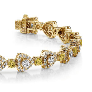 Triangular Diamond Link Gemstone Bracelet In Platinum Or Gold