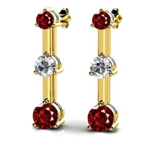 Triple Gemstone And Diamond Prong Set Earrings In Platinum Or Gold