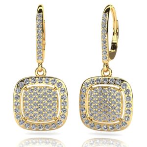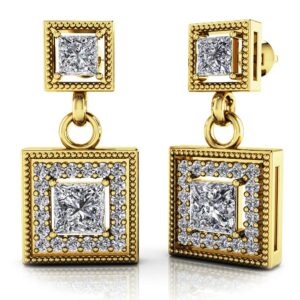 Diamond Square Drop Earrings In 14K 18K Yellow White Or Rose Gold