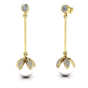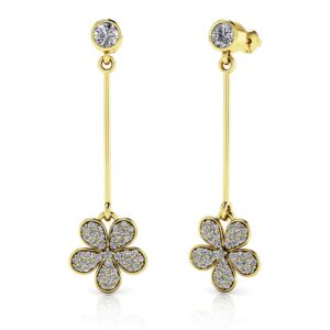 Flower Blossom Drop Bar Earrings In White Yellow Or Rose Gold