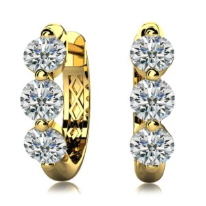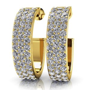 Small Triple Row Diamond Hoop Earrings In White Yellow Or Rose Gold