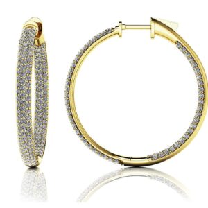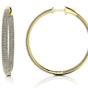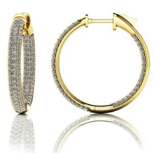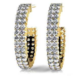 Two Row Diamond Open Hoop Earrings In 14K 18K White Yellow Rose Gold Or Platinum