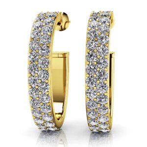 Double Row Diamond Oval Hoop Earrings In 14K 18K White Yellow Or Rose Gold