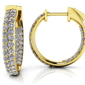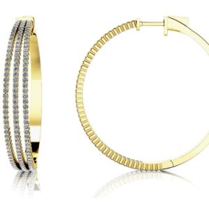 Large 3 Row Diamond Hoop Earrings In White Gold Yellow Gold Or Platinum