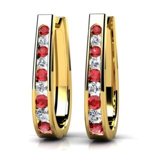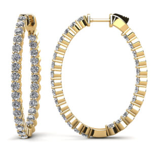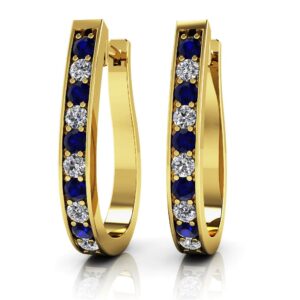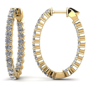 Oval Shaped Gemstone Diamond Hoop Earrings Available In Platinum Or Gold