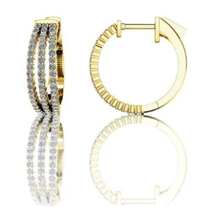 Petit 3 Row Diamond Hoop Earrings In 14K 18K White Yellow Gold Platinum