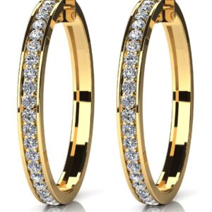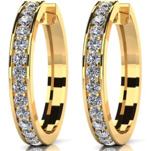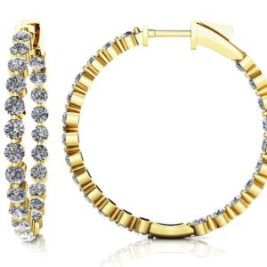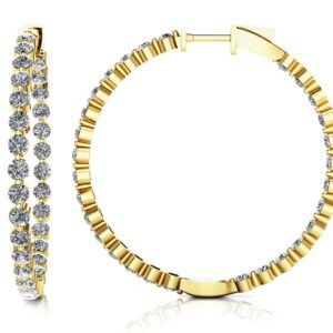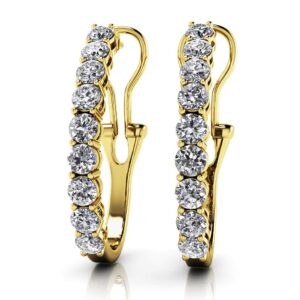 Shared Prong Diamond Hoop Earrings Large In 14K 18K Yellow White Or Rose Gold