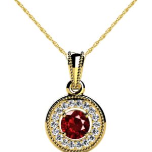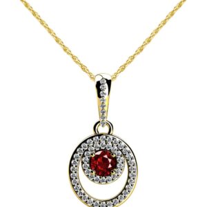Center Gemstone Diamond Circle Pendant In Yellow Gold White Gold And Platinum