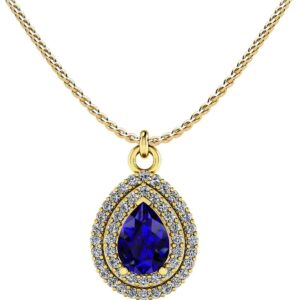 Vintage Double Halo Teardrop Diamond Gemstone Pendant