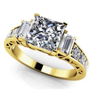 Princess And Baguette Diamond Engagement Ring In Yellow White Gold Or Platinum