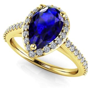 Pear Gemstone and Halo Diamonds Engagement Ring