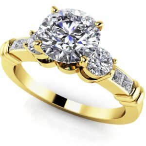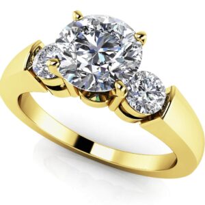 Triple Diamond Engagement Ring In 14K 18K White Yellow Or Rose Gold