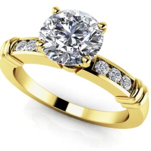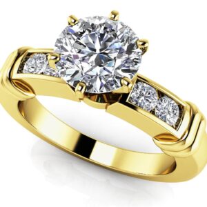 Channel Set 6 Prong Center Stone Engagement Ring Available In Platinum Or Gold