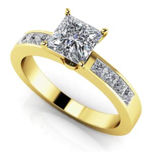 Channel Set Princess Cut Diamond Engagement Ring In Yellow White Gold Or Platinum