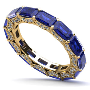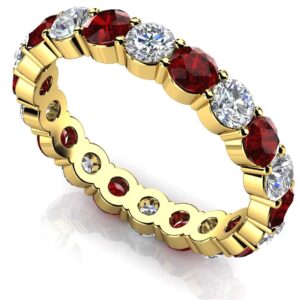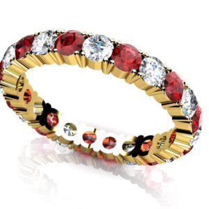 Gemstone And Diamond Eternity Ring In 14K 18K White Yellow Gold Platinum