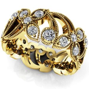 Flower Leaf Design Diamond Eternity Band Available In Gold Or Platinum