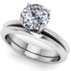 This classic and sophisticated bridal set is truly a dream come true. This bridal set features a single row of diamonds on the shank of the engagement ring and matching band with a four prong round center diamond. Customize the bridal set to your exact taste and budget by selecting the metal type, total carat weight, diamond quality and size.
