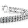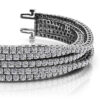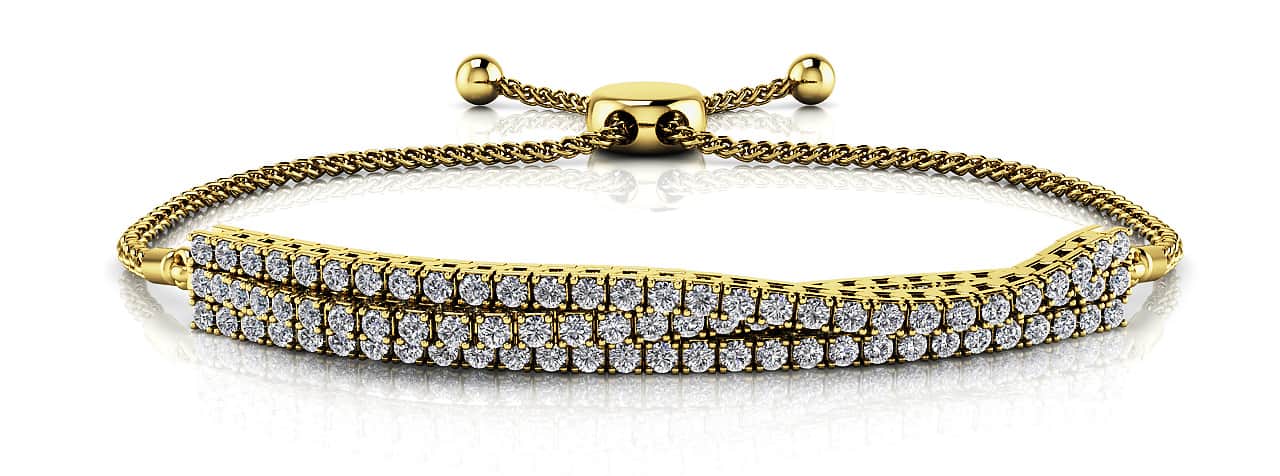 This beautiful three-row adjustable bracelet is the definition of modern luxury. Three flexible rows hold perfectly set brilliant round diamonds to decorate your risk with elegant sparkle. Designed to create a look of fluid movement, the strands join together at the clasps for an unforgettable look of luxury.