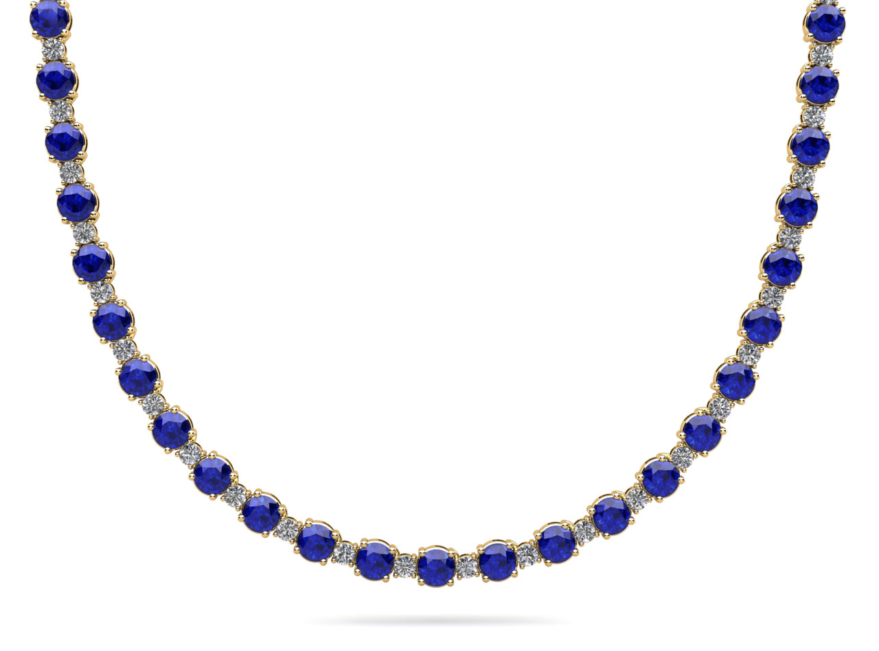 This attractive design blends the beauty of a tennis necklace with a dimensional look and feel that comes from alternating both diamonds and gemstones. Custom design yours with the stone sizes of your choice, and by selecting 14 or 18kt yellow, rose or wh