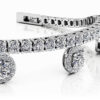 Fall in love with this alluring diamond charm bracelet. A sparkling four prong diamond bracelet features five radiant charms. Each charm holds a stunning emerald diamond encircled by a halo of brilliant round diamonds. Available in your choice of gold or platinum setting – Sensual and exotic, this bracelet will catch her eye.