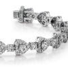 Each fabulous link in this piece showcases a beautiful, diamond-lined almond shaped work of art! The center of each link features a diamond which appears to float – rather like a beautiful eye! The links are colored stones of your choosing, and the entire combination paints quite a fabulous picture! Whether you choose gold or platinum – this is a truly inspirational piece!