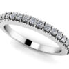 An alternating design features brilliant diamonds and your choice of colorful gemstone. Make this is a special anniversary ring when you customize the metal type, diamond quality and gemstone type. There will be 10 or 11 stones (depending on size you choose) that are prong set along the top of the ring so the emphasis is on the pretty gems. Choose from a .36 carat or .60 carat size. Pair this with your wedding ring or give it as a special anniversary gift.