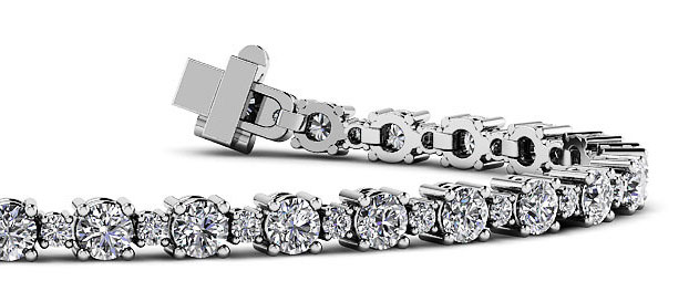 This attractive design blends the beauty of a tennis bracelet with a dimensional look and feel that comes from alternating diamond sizes. Custom design yours with the stone sizes of your choice, and by selecting 14 or 18kt yellow, rose or white gold or platinum.