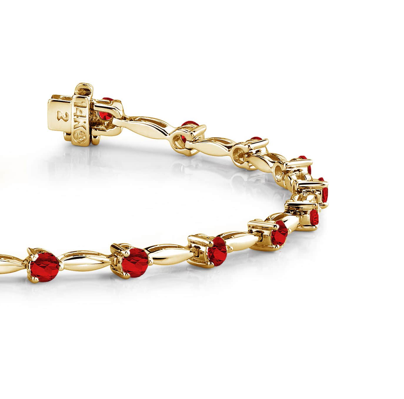 This elegantly designed bracelet is the best of two classic styles. Available in your choice of 4 different sizes, featuring between 15 and 24 gemstones depending on the size. It showcases lovely, brilliant gemstones, alternating with links of gleaming gold or platinum! The links are elongated ovals – and point perfectly at each end to yet another colorful gemstone!