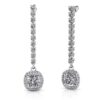 Modern and sophisticated, these stunning drop earrings will light up the room. Brilliant round diamonds drop down to showcase the vibrant cushion cut gemstone of your choice, which is surrounded by a beautiful double halo of round diamonds. These earrings measure approximately 1.75 inches in length and make an elegant statement of style.