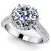 Start your journey together with this exquisite cushion cut engagement ring. A stunning cushion cut center diamond is surrounded by a double halo of round diamonds that continue along the band in a unique channel setting. Choose your perfect carat weight in either a gold or platinum setting.