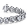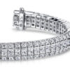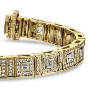 Prepare to WOW in this red carpet diamond bracelet! Each square link has a princess cut center stone, secured with a bezel setting and bordered by smaller round diamonds. In between each link is a side link containing four round diamonds. Make it your own when you customize it in white gold, yellow gold or pretty platinum!
