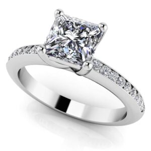 Propose to the love of your life with an engagement ring that will show her just how special she really is. The engagement ring features a princess center diamond and round diamonds in a channel setting. Tailor the ring to your preference of metal type, total carat weight, and diamond quality and take her breath away!