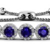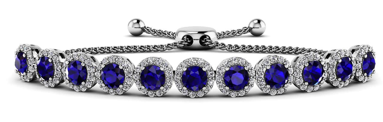 This is the perfect bracelet style to accentuate your favorite gemstone. Each brilliant gemstone within the round halos is encircled with diamonds to create a luxurious setting. The addition of an adjustable chain means you can wear this stunning bracelet