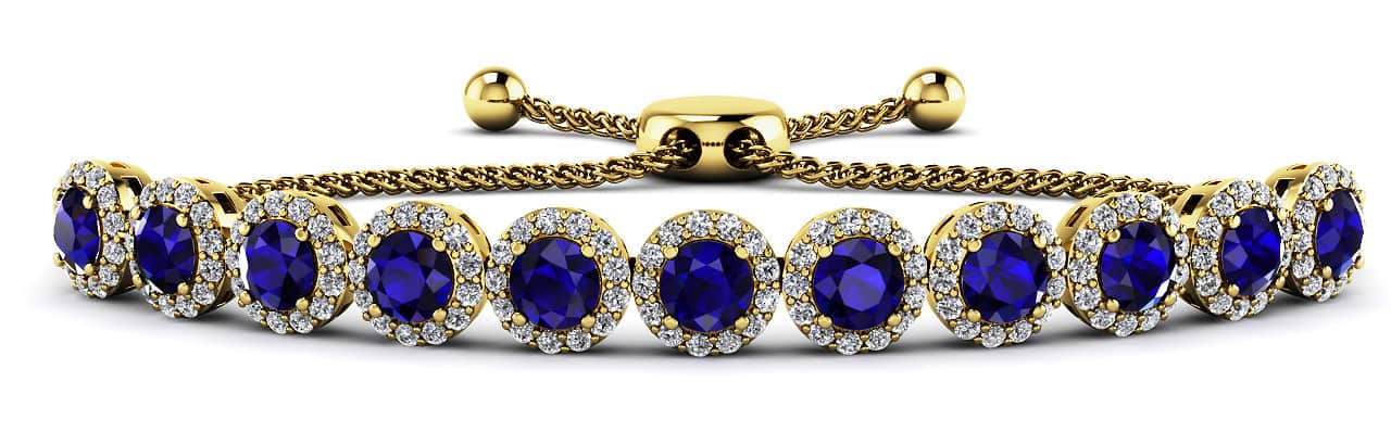 Bolo Round Halo Gemstone and Diamond Bracelet
