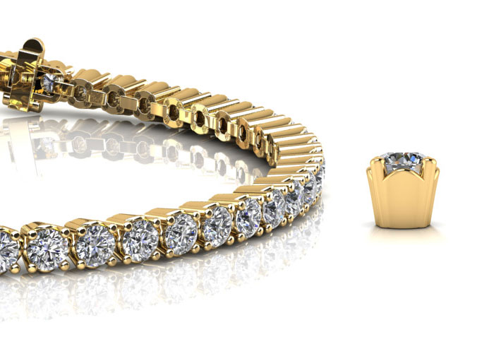 This twist on a classic tennis bracelet design displays brilliant diamonds front and center within a cupped setting that is bridged by bottom links for a comfortable fit. Custom design your Bridge Setting tennis bracelet with the diamond size of your choice, and by selecting 14 or 18kt yellow, rose or white gold or platinum.