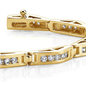 Each incredible link in this bracelet is like a gently sloping bridge, with a higher area in the centre. The links hold lovely, round, prong set diamonds, and our ‘bridge builders’ can make this piece for you in either gold or platinum . you decide! This piece comes in 2 sizes, in total diamond weights of 2 or 3 carats. Here’s a bridge you’ll never get over!