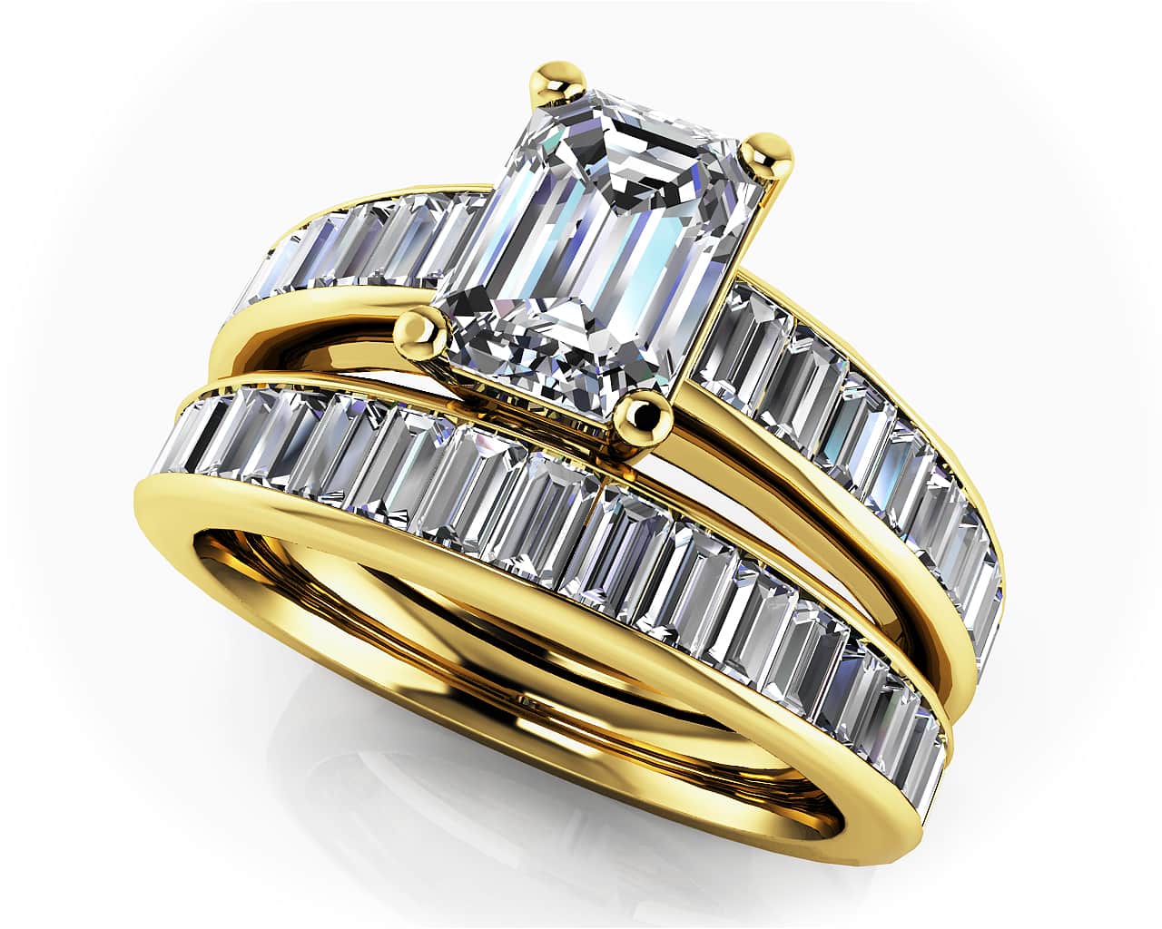 Brilliant Fire Emerald Cut Bridal Set In Yellow White Gold Or Platinum