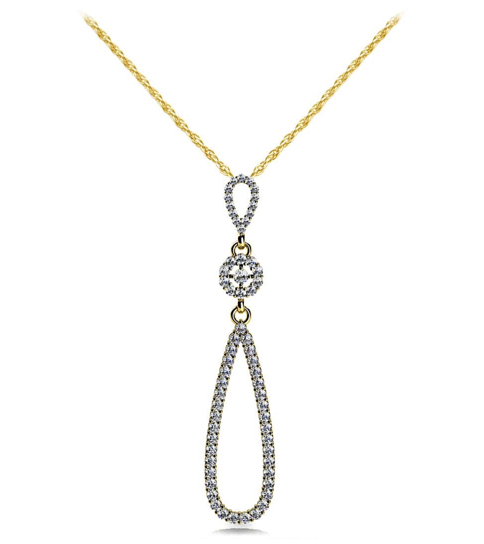 Just try to improve on our lovely teardrop pendant. We didn’t think it was possible, but our designers found the perfect accent. A lovely, diamond cross, encircled with more diamonds, and made that the ‘connection’ between the two beautiful teardrops in this pendant. The result is truly stunning. It’s available in 3 different combinations, with total diamond weights ranging from half of a carat to 1.3 carats. This one is sure to please!